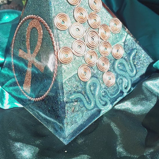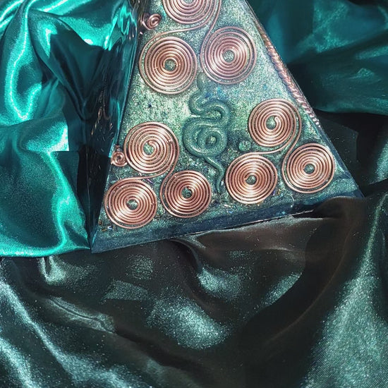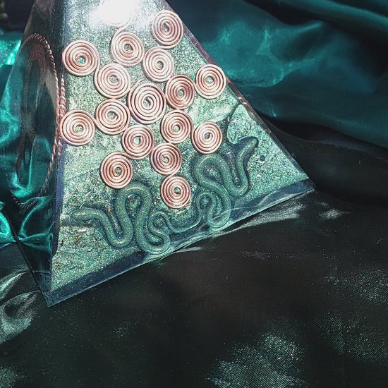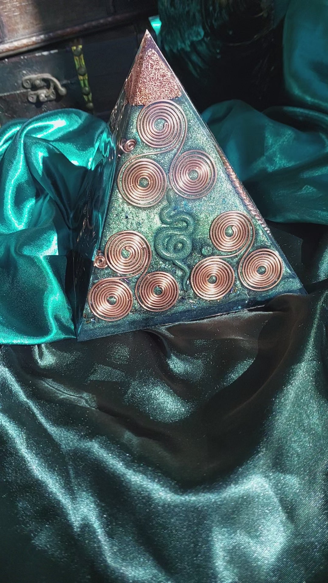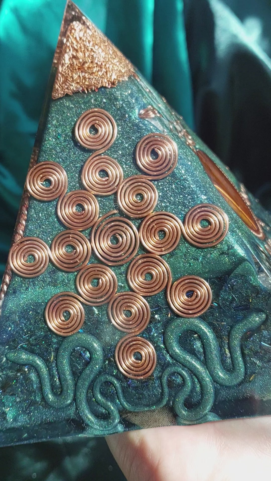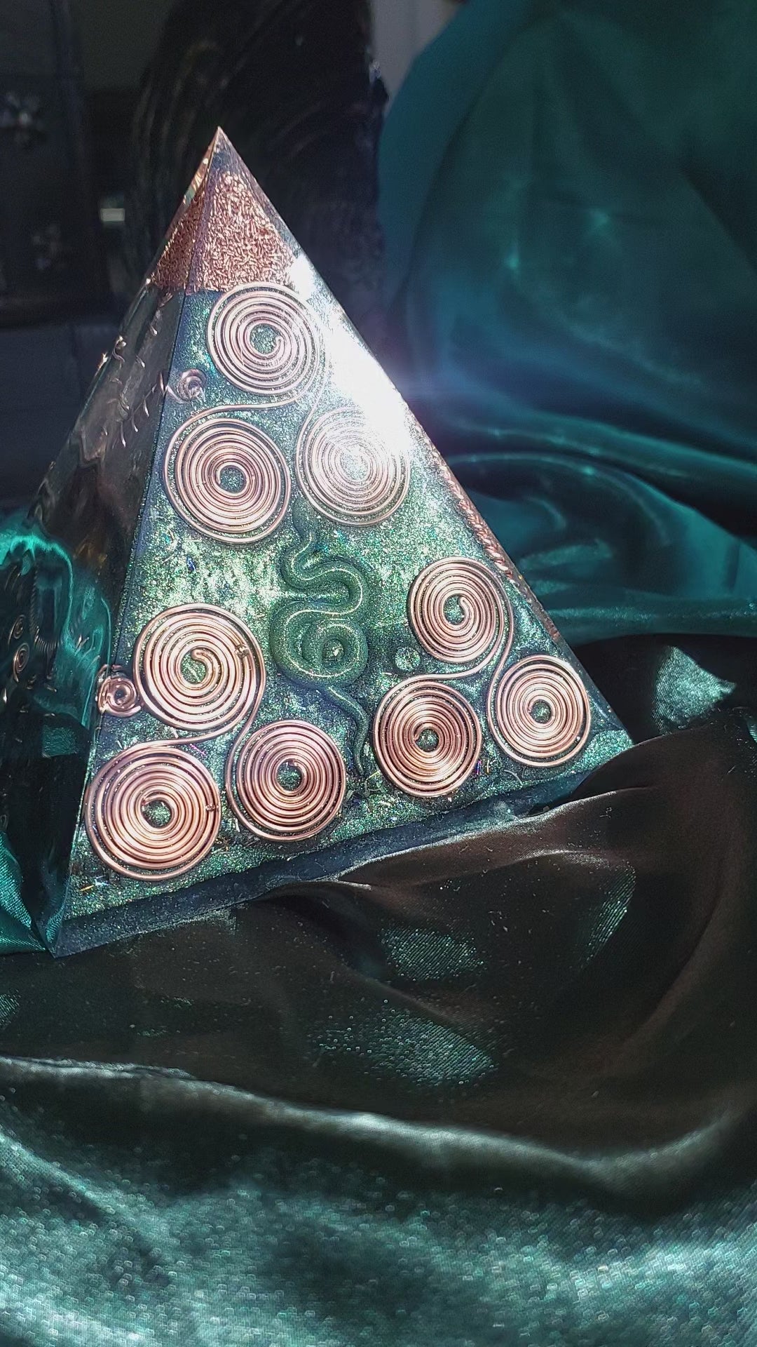 Large Green & Copper Orgonite Pyramid - Masterpiece Edition